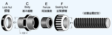 ·适用范围: 可结合自 5/16" 到 2" 之被覆金属蛇管规格使用。